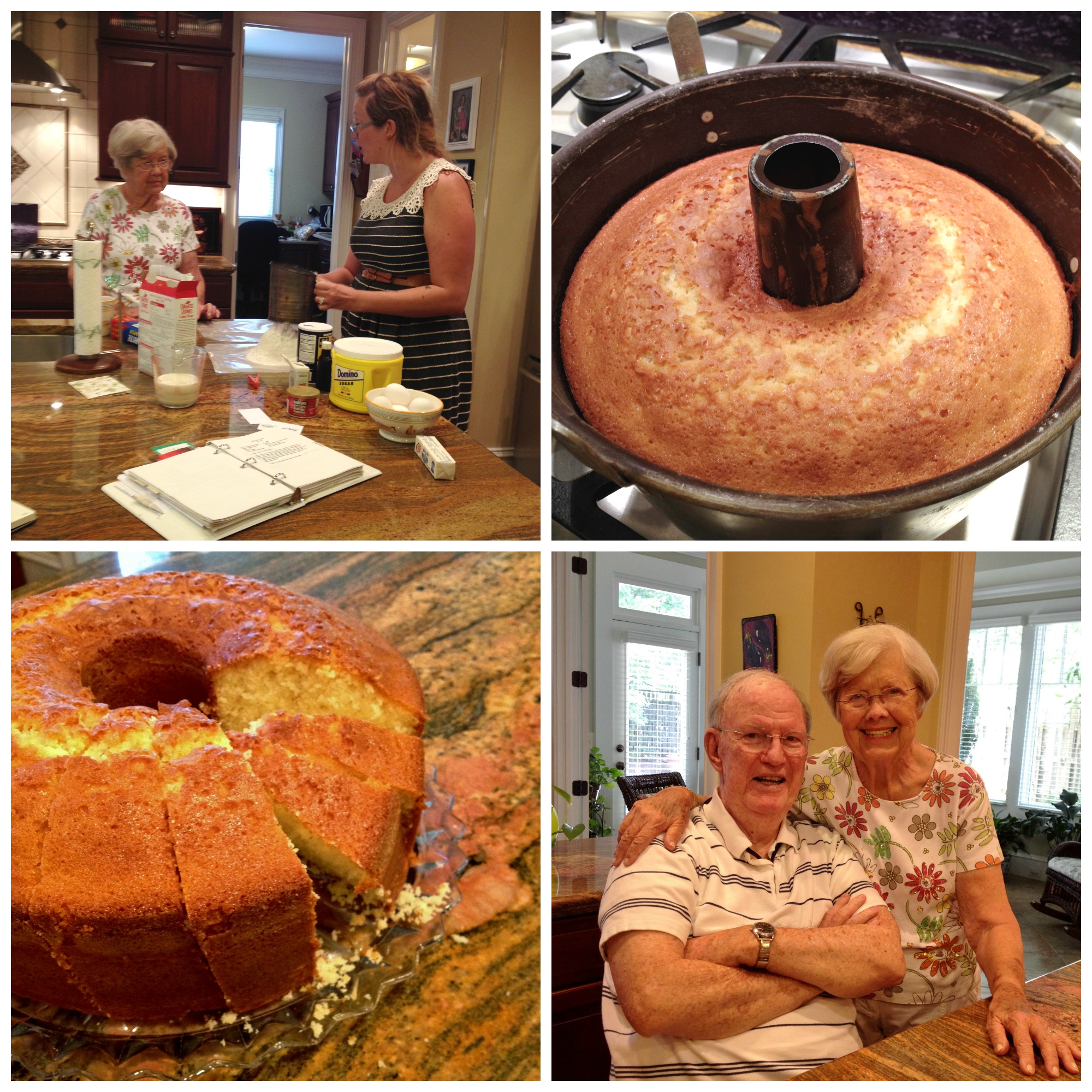 The weeks flew by as I visited Raleigh’s Visitor Information Center, Cameron Village Regional Library, Meredith College Library and savored a wonderful lunch with a Meredith College Alum at Side Street Restaurant in Raleigh’s Historic Oakwood neighborhood. I then had the wonderful opportunity to meet Elena in Raleigh to learn a little more about the Southern classic dessert, Pound Cake. Elena’s grandmother’s brother, Ted, and his wife Ann opened their kitchen to us and helped us prepare an 100 year old pound cake recipe from Nanny, (aka Flossie), Ted’s mother. Ann and Ted told stories from moving around this great state of North Carolina and residing in Wake County. They shared pictures of their family tree and how they have family ties to North Carolina State University and Meredith College. Most importantly we learned how the pound cake was made “just right” and how it became a treasured family recipe.