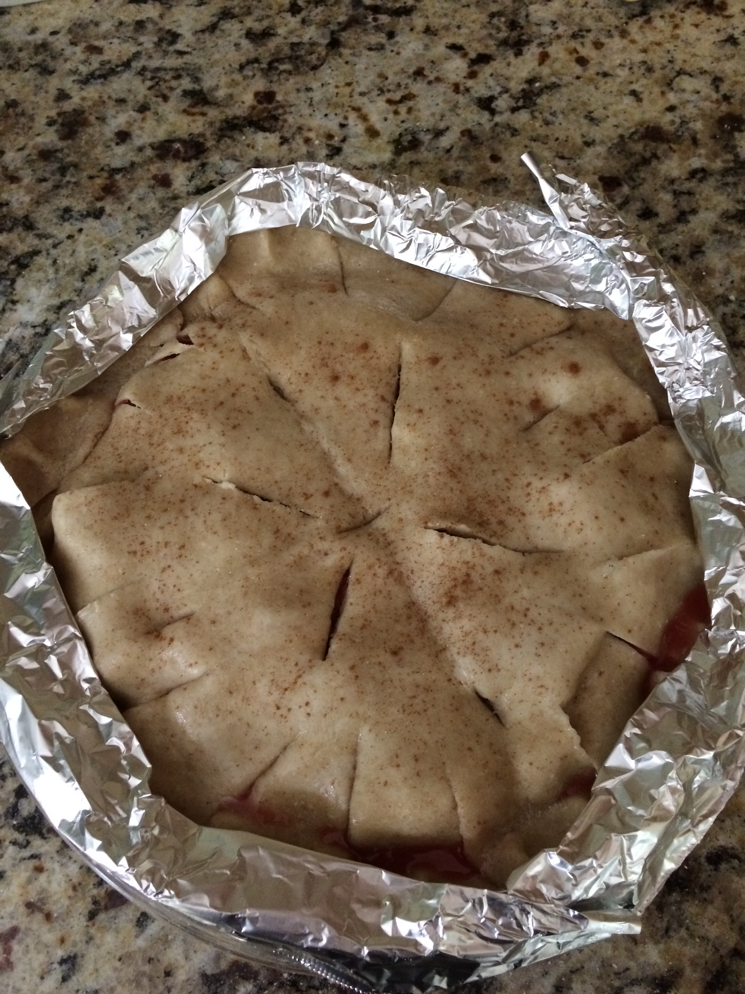 Cover crust with foil to prevent over-browning. Optional: brush top crust with egg white and sprinkle with cinnamon and/or sugar.