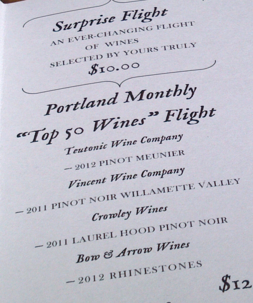 The wine menu featured an extensive variety of choices for the consumer. I was delighted to see I had the option of a ‘surprise’ flight of wine. I was quite intrigued by one Pinot Noir the bartender chose for me, as it was a wine from another winery in downtown Portland, Hip Chicks do Wine. This will be the next tasting room I will visit whenever I have the chance to travel back.The wine caught me off guard as it had an aroma of a distilled wine, such as Port or Sherry. The nose was magnificent. As I sipped, notes of black cherry and plums filled my mouth and left my taste buds wanting more.The tannins lingered long after.
